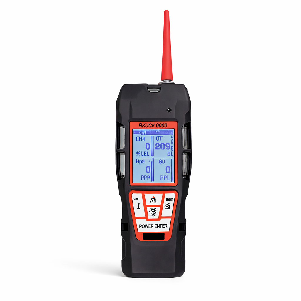Detector multigás portátil que mide hasta seis gases simultáneamente. Incorpora conectividad Bluetooth, bomba de muestreo, pantalla multilingüe y diseño resistente IP66/68, ideal para entornos industriales y marino